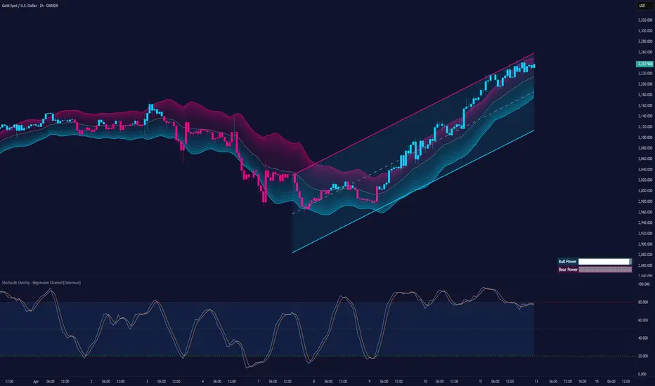 █ Overview The Stochastic Overlay – Regression Channel (Zeiierman) is a next-generation visualization tool that transforms the traditional Stochastic Oscillator into a dynamic price-based overlay. Instead of